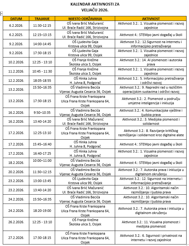 Predstavljamo kalendar aktivnosti koje u mjesecu veljači provodimo kroz projekt "STEMpo - Ritam zajednice: Digitalne kompetencije za humani razvoj“.